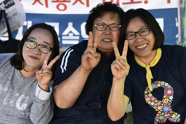 이점진은 젊은 조합원들이 모두 자식처럼 느껴졌다. 쾌활함을 발휘해 “서른여섯 이상은 누나, 그 아래는 이모, 20대 초반은 엄마라고 불러”라고 명령했다. 매주 금요일에는 지역 동지들과 함께 문화제를 열었다. 분위기가 무르익으면 승용차를 갖다 대고 음악을 크게 틀어 함께 춤을 추기도 했다. 사람 할 짓 아니라는 겨울철 노숙농성이었지만 이모뻘 되는 이 동지와 조합원들은 그렇게 신나게 투쟁을 이어 갔다.