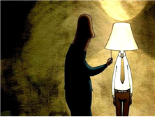첫 장면에 등장하는 자명종 시계부터 사람을 담고 있다. 숫자판에는 웃음을 함박 머금은 사람이 그려져 있고, 두 팔로 각각 7과 3을 가리키고 있다. 얼핏 보면 눈에 띄지 않지만, 어둠 속에 묻혀 있는 침대 옆 꼬마탁자도 사람이 웅크리고 앉아 있는 모습이다.
