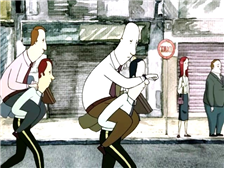 이 애니메이션에는 말로 옮기기 쉽지 않은 요소가 있다. (그러므로 이 글을 읽는 독자들은 반드시 유투브에서 동영상을 찾아보시기 바란다.) 영상에 등장하는 수많은 물건들이 사람의 모습을 하고 있다는 점이 바로 그것이다.