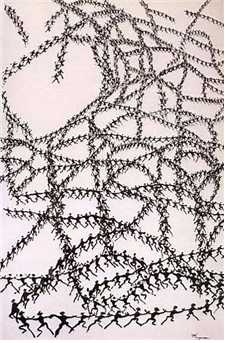 <고용>은 모든 사람이 저마다 노동의 끈을 통하여 서로 연결되어 있으며, 모든 사람이 저마다 다른 모든 사람과 노동을 주고받으면서 살아가고 있다는 사실을 그림을 통하여 선명하게 보여주고 있다. 노동의 끈은 눈에 보이지 않는다. <고용>은 그것을 눈에 보이도록 만들어주고 있다.