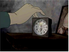첫 장면에 등장하는 자명종 시계부터 사람을 담고 있다. 숫자판에는 웃음을 함박 머금은 사람이 그려져 있고, 두 팔로 각각 73을 가리키고 있다. 얼핏 보면 눈에 띄지 않지만, 어둠 속에 묻혀 있는 침대 옆 꼬마탁자도 사람이 웅크리고 앉아 있는 모습이다.