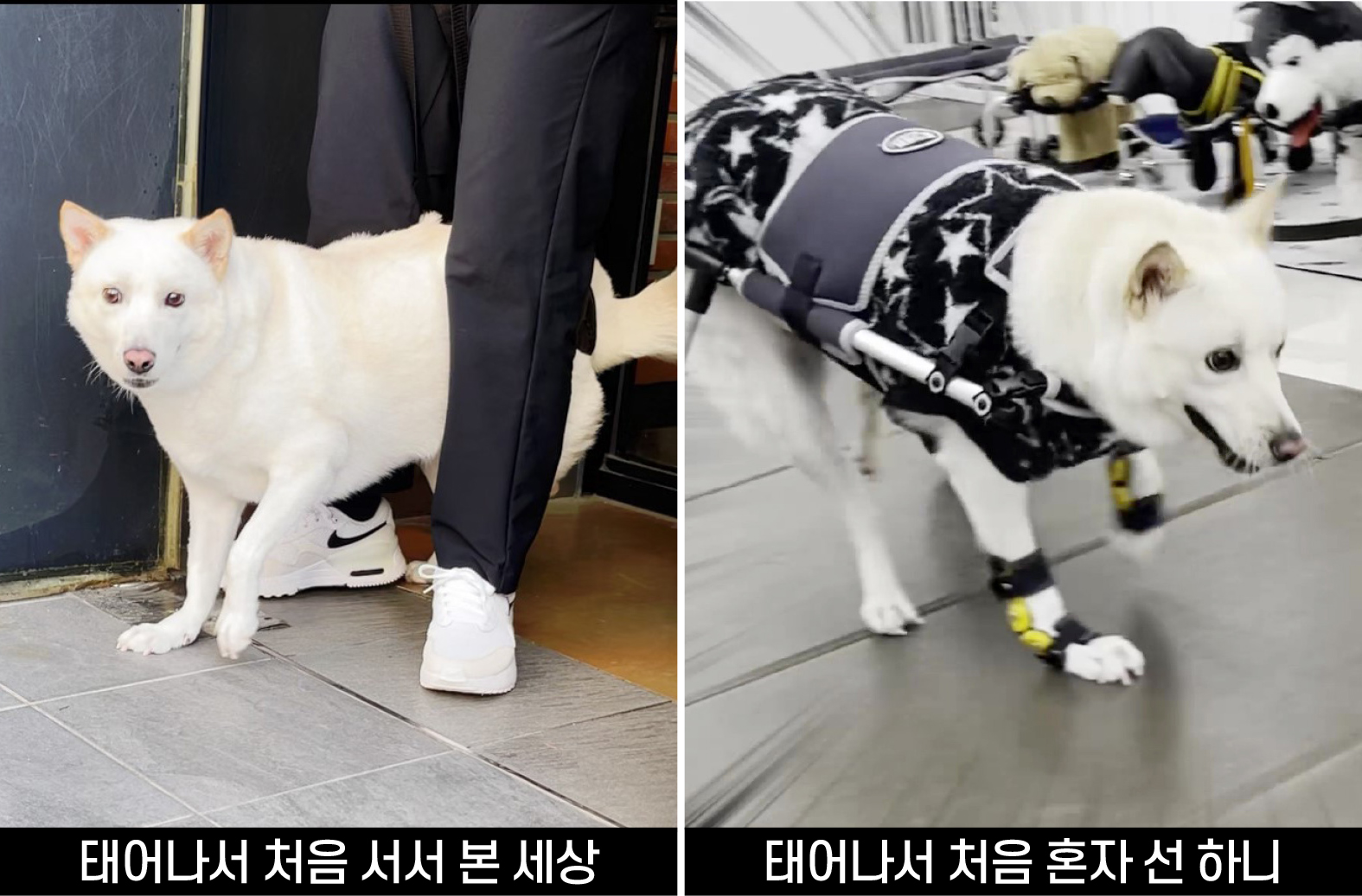 하니의 입장과 인간의 기준에 대해서 정말로 많은 생각을 했다. 생각할 때마다 마음이 이리저리 왔다갔다 했다. 과연 어떤 것이 하니를 행복하게 하는 일일까? 하니와 대화를 할 수 없으니 결정은 내가 해야 했다. 나는 아직 어린 하니가 평생을 이렇게 앞발로만 기어다니는 삶을 살게하고 싶지 않았다. 무엇보다 걸을 수 있는 아이를 엄마의 잘못된 판단으로 평생을 앉아서 지내게 하는 것 아닐까 두려웠다. 오랜 고민 끝에 많은 사람들이 말렸던 재활치료를 시작했다.