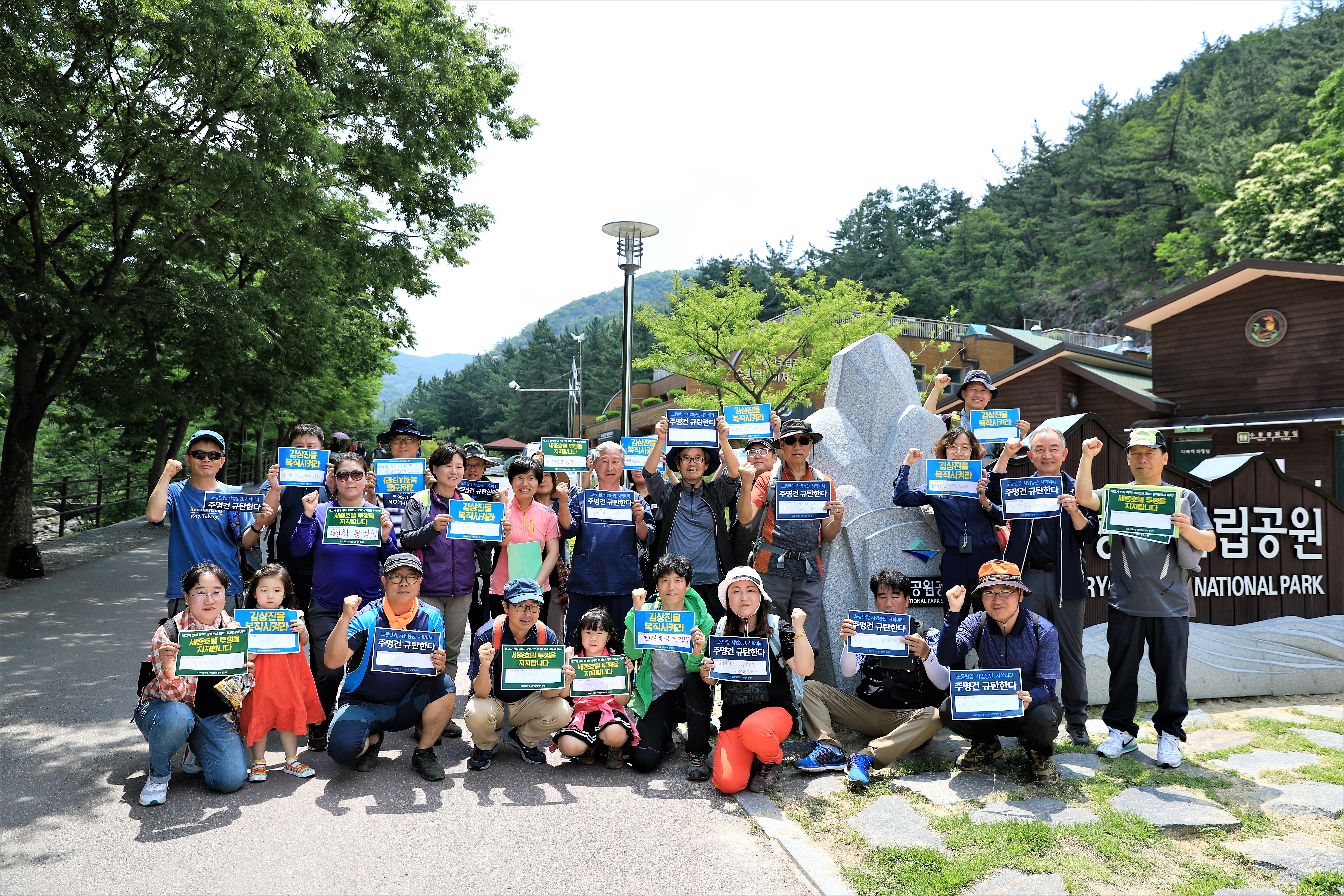 마지막 사진은 세종호텔 투쟁 연대 인증샷입니다. 사진 찍으시는 전병철 동지의 제안으로 다같이 세종호텔노동조합 김상진 해고자 동지의 복직을 촉구하고, 적폐중의 적폐 사학비리의 온상 주명건 이사장을 몰아내기 위한 인증샷을 함께 찍었습니다. 세종호텔노동조합은 사측이 세운 어용 복수노조로 힘든 와중에도 민주노조를 사수하고 투쟁을 이어가고 있습니다.