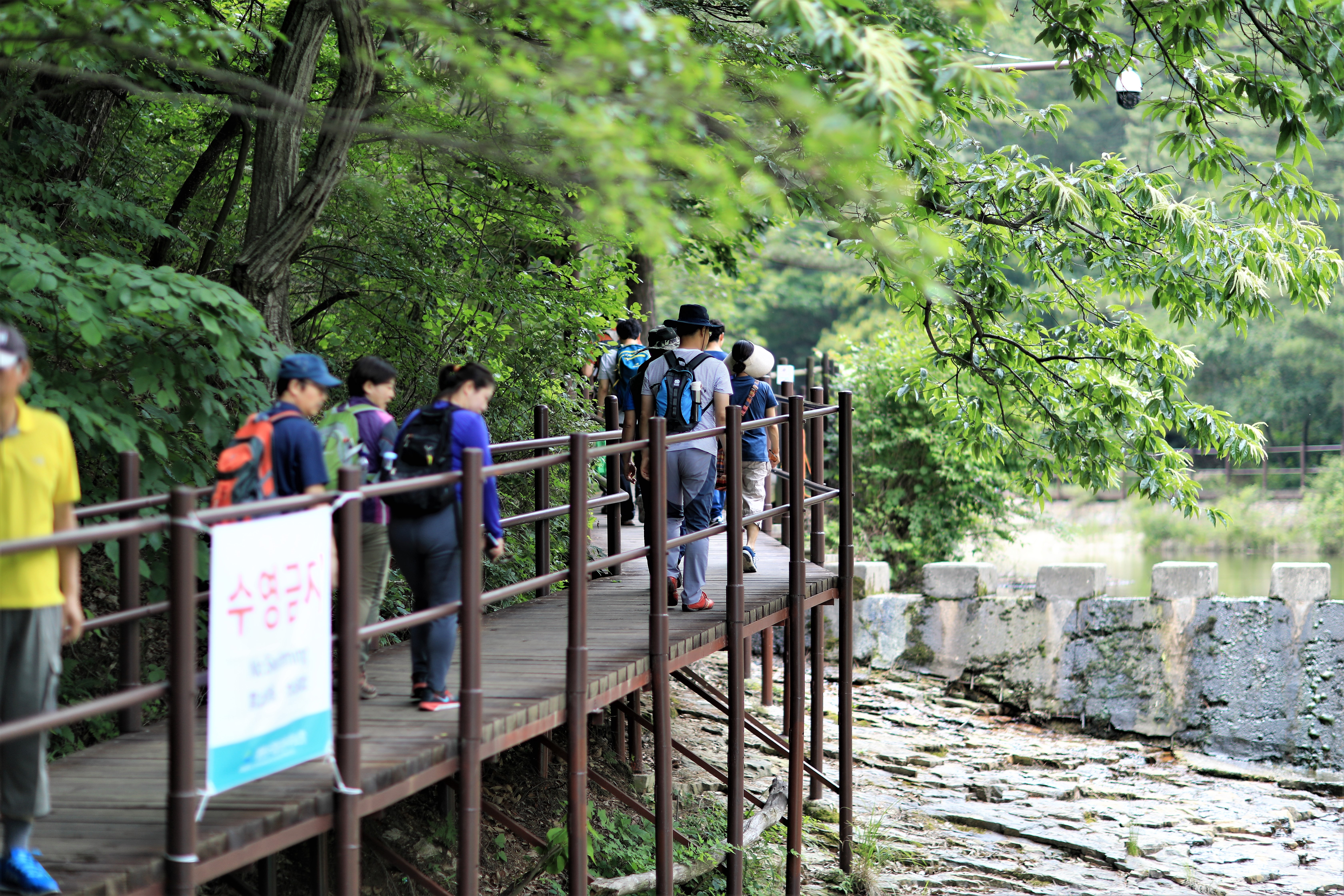 수통골 계곡을 끼고 올라갑니다. 덜 위험한 곳에서는 발도 담그고 놀았어요~