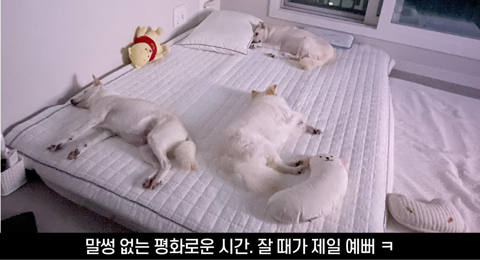 지금 가장 큰 문제는 하루에도 몇 번씩 이불에 똥오줌을 싸는 것인데 나는 이것 때문에 꽤 힘이 든다. 매일 침대패드 2~3개에 베개나 이불빨래도 해야된다. 정말 한숨이 나지만 겁이 많으면서도 뻔뻔한 성격의 송이를 혼내는 건 아무 의미가 없다. 그저 조용히 다시 빨래를 돌리는 수밖에 없다.