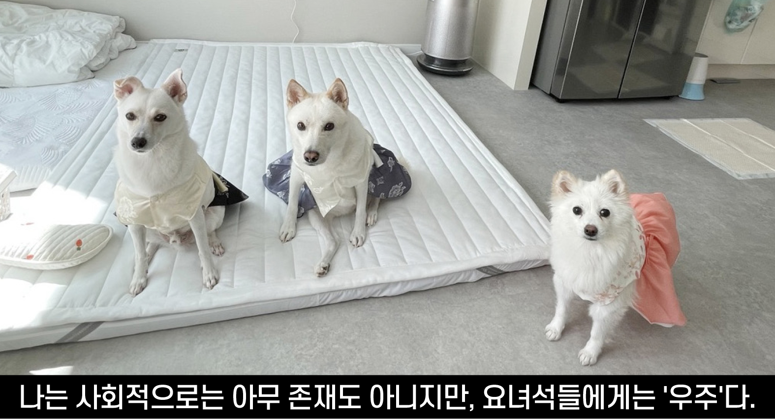 나는 지금 당장 이세상에서 사라져도 내 주변이나 세상에 아무런 영향을 미치지 않는, 그저 우주의 먼지같은 존재로 살고 있지만, 나에겐 내 마지막 일주일을 모두 쏟아붓고서라도 안전하게 챙겨야 될 생명이 셋이나 있다.