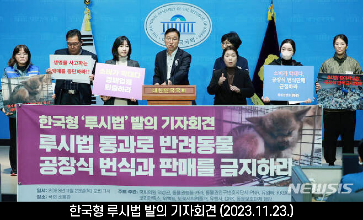 지난 1월 9일에 국회 본회의에서 통과된 ‘개 식용 종식 특별법’에 이어 동물의 무분별한 번식과 매매를 금지하는 ‘루시법’도 하루 빨리 통과되기를 간절하게 바란다.
