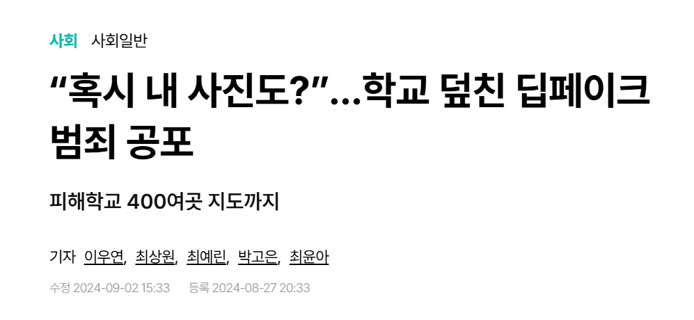 최근 딥페이크 피해가 얼마나 많은지 언론을 통해 알려졌어요. 딥페이크는 당사자의 동의 없이 초상권을 침해하고, 성적대상화함으로써 성적자기결정권을 침해하거나 ‘능욕’하면서 그것을 ‘놀이’로 즐기는 성범죄입니다. 피해자는 개인정보 유출로 인해 일상도 침해와 위협을 받게 되고요. 또한 가해자가 누구인지 알기 어렵기 때문에 주변의 모든 남성(가해자가 거의 남성이므로)을 두려워하게 되고, 자신이 어떻게 합성되어 재현될지 모르기 때문에 긴장과 의심과 불안으로 몰아넣어 삶을 위축시키는 심각한 폭력이에요.