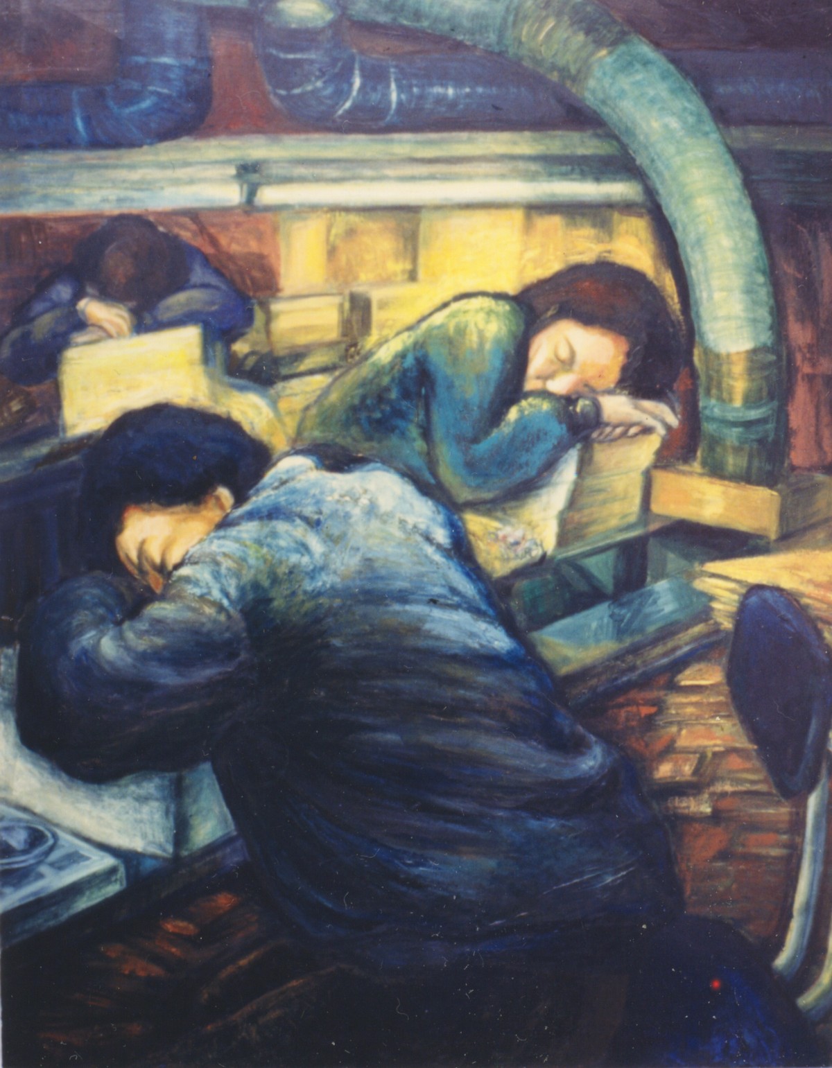 하지만 학교에서 배울 수 없었던 그림들을 따로 찾아보면서 안도할 수 있었지요. 할 일이 쌓인 비좁은 공간에 엎드려서 쪽잠을 자는 여성들의 모습은 저와 다를 바가 없었기 때문이에요. 자본을 독점한 소수의 사람들 외에 우리는 누구든 과잉 노동을 하도록 내몰리고 있잖아요. 한 번도 학생이기만 한 적 없이 노동을 병행해야 했던 저에게는 가장 부족한 것이 수면시간이라 이 그림이 더 다가왔던 것 같습니다. 안 그래도 부족한 수면시간을 민주주의를 무시하는 무리에게 빼앗기고 있어 더 원통한 요즘이에요.