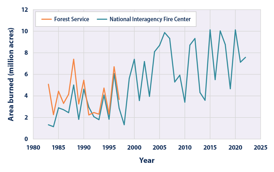 *미국 연방환경보호청(https://www.epa.gov/climate-indicators/climate-change-indicators-wildfires)
