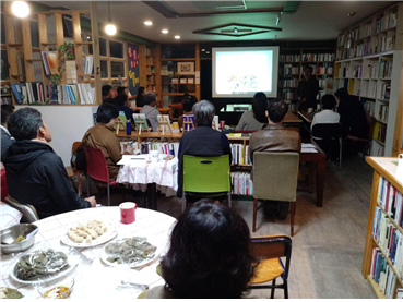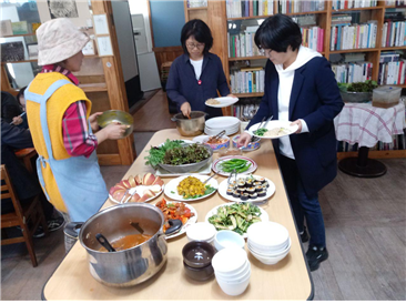 같은 공간을 사용하는 '평화밥상 협동조합' 조합원들이 준비한 개소식 음식과 함께, 담소와 식사를 나눴습니다.