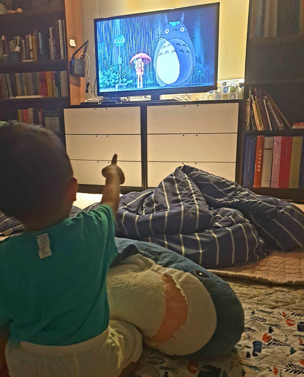 최근 수영이랑 실랑이가 많아졌다. 얼마 전까지 50일 넘게 비가 내렸다. 잠시 해가 비치나 했더니 코로나19가 재확산되고, 태풍까지 연이어 올라오고 있다. 그 기간 수영이가 바깥에서 놀아본 횟수는 손에 곱을 정도다. 이전에 아장아장 걷던 수영이가 아니다. 집안이든 집 밖이든 두 발로 서면 하염없이 무조건 뛴다. 얼마나 나가서 뛰어다녔던지 햇볕에 타서 두 다리가 새까맣다. 그런데 한참 동안 뛰어다니지 못했으니 매일 실랑이다. 나가자는 24개월 혈기왕성한 아들과 못 나간다는 늙은 아빠의 대결이다. 이젠 두 살 됐다고 말도 안 듣는다. 게다가 힘까지 세져서 몸으로 막는 것도 버겁다. 동화책과 장난감으로 버티는 것도 한계가 있다. 어쩔 수 없이 텔레비전을 켜줬다. 36개월까지는 텔레비전과 스마트폰 노출을 최대한 줄이려고 했다. 하지만 마냥 길어지는 집꼭 생활에 산산이 무너지고 말았다. 물론 효과(?)는 컸다. 이제 수영이는 나가자고 보채지 않는다. 대신 아침에 눈을 뜨면 토토()! 토토()!’를 외친다. 아들과 아빠가 사이좋게 텔레비전 앞에 앉아서 미야자키 하야오의 이웃집 토토로를 본다. ‘아르~! 아르~! 와타시와 겡끼!’ 아빠는 주제가를 따라 부르고, 수영이는 발을 구르면서 박수를 친다. 수영이가 더 크면 아빠와 세대를 뛰어넘어 덕질도 함께 할 수 있을 것 같다. 이젠 실랑이도 없고, 평화다! 근데 뭔가 개운치 않다. 비상한 시국에 비상한 대책이긴 한데 . 뛰어놀기 좋은 날에도 수영이가 텔레비전 앞에만 앉아 있으면 어쩌지?
