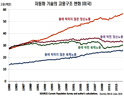 왜 고용이 양극화 되고 있을까? 왜 고숙련 및 저숙련 일자리는 늘어나고 있는데, 중간숙련 일자리는 줄어들고 있을까?