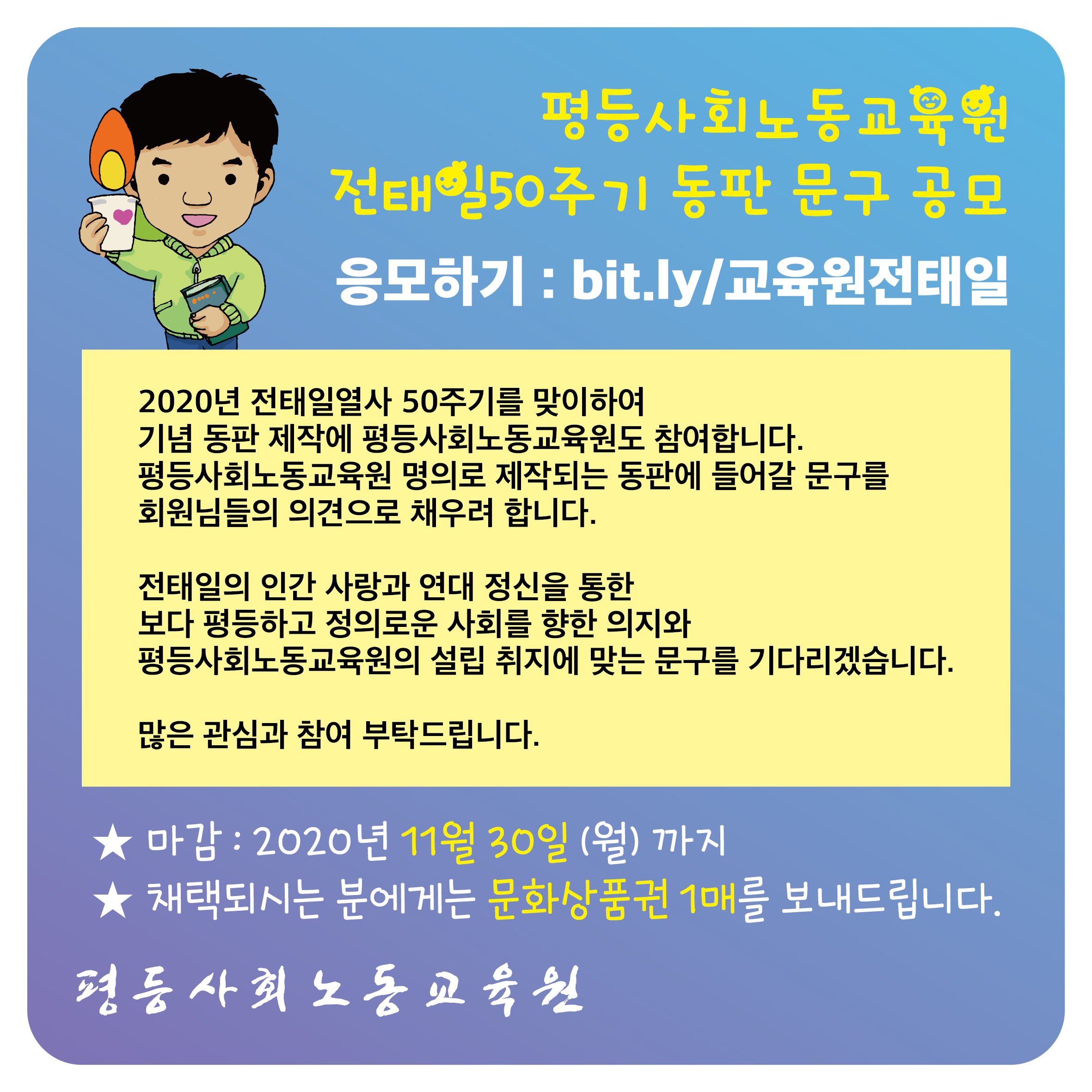 [교육원 이모저모] 전태일50주기 기념동판 문구 공모!